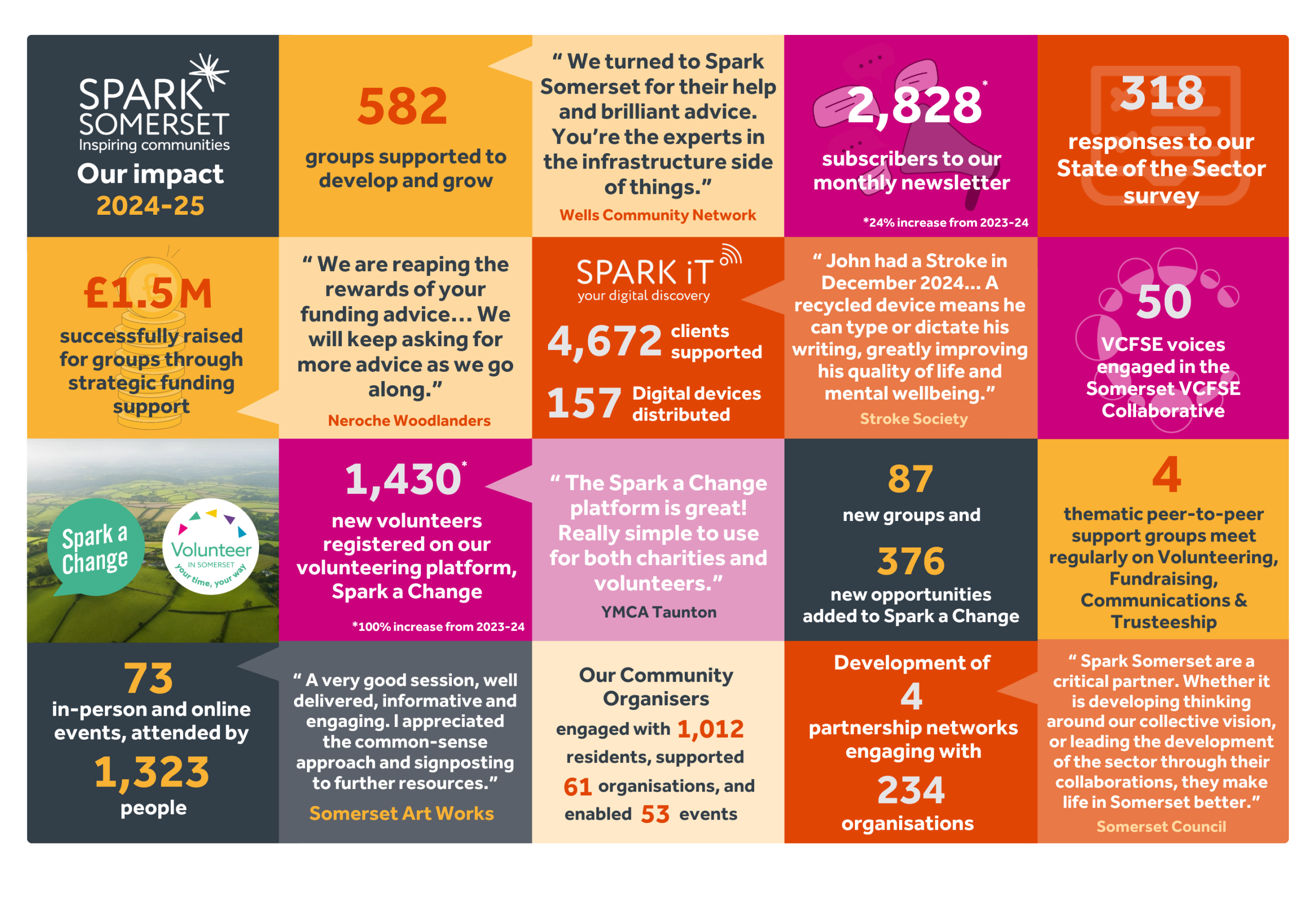 Read our 2024/25 Impact Report, a celebration of the partnerships, projects, and people who are shaping stronger, more resilient communities across Somerset.